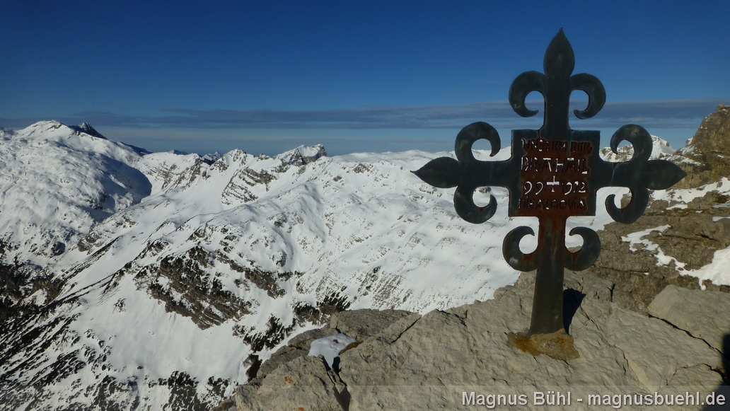 Der Hochvogel läuft ja nicht weg und ich war schon so oft hier oben, dass ich nichts erzwingen muss. Nach ausgiebiger Rast mit Tee und Müsli, steige ich wieder vorsichtig ab. Ich lasse mir Zeit für Fotos, zum Schauen und Staunen. Um kurz vor 14 Uhr bin ich wieder am Auto. Welche Gnade im Januar, so weit hoch auf den Hochvogel steigen zu können.