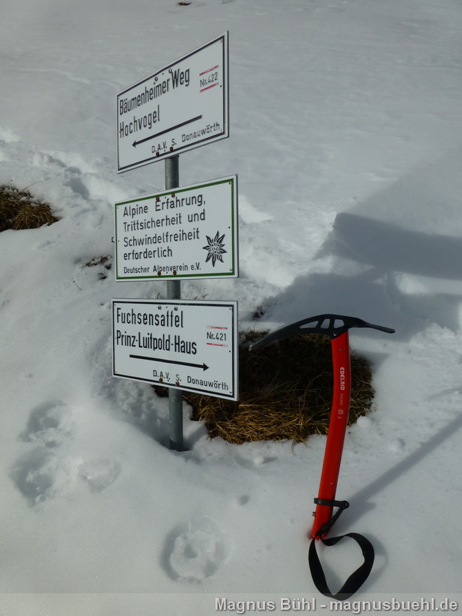Bis zum Abzweig Fuchsensattel – Bäumenheimer Weg geht es noch ohne Steigeisen