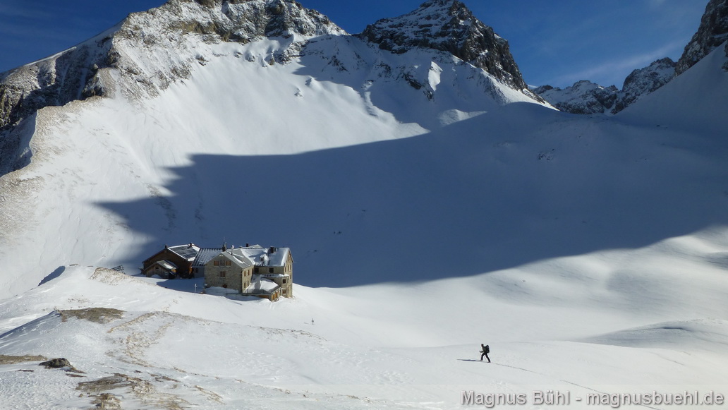 Rappenseehütte im Winter – weiter bis zur Großen Steinscharte